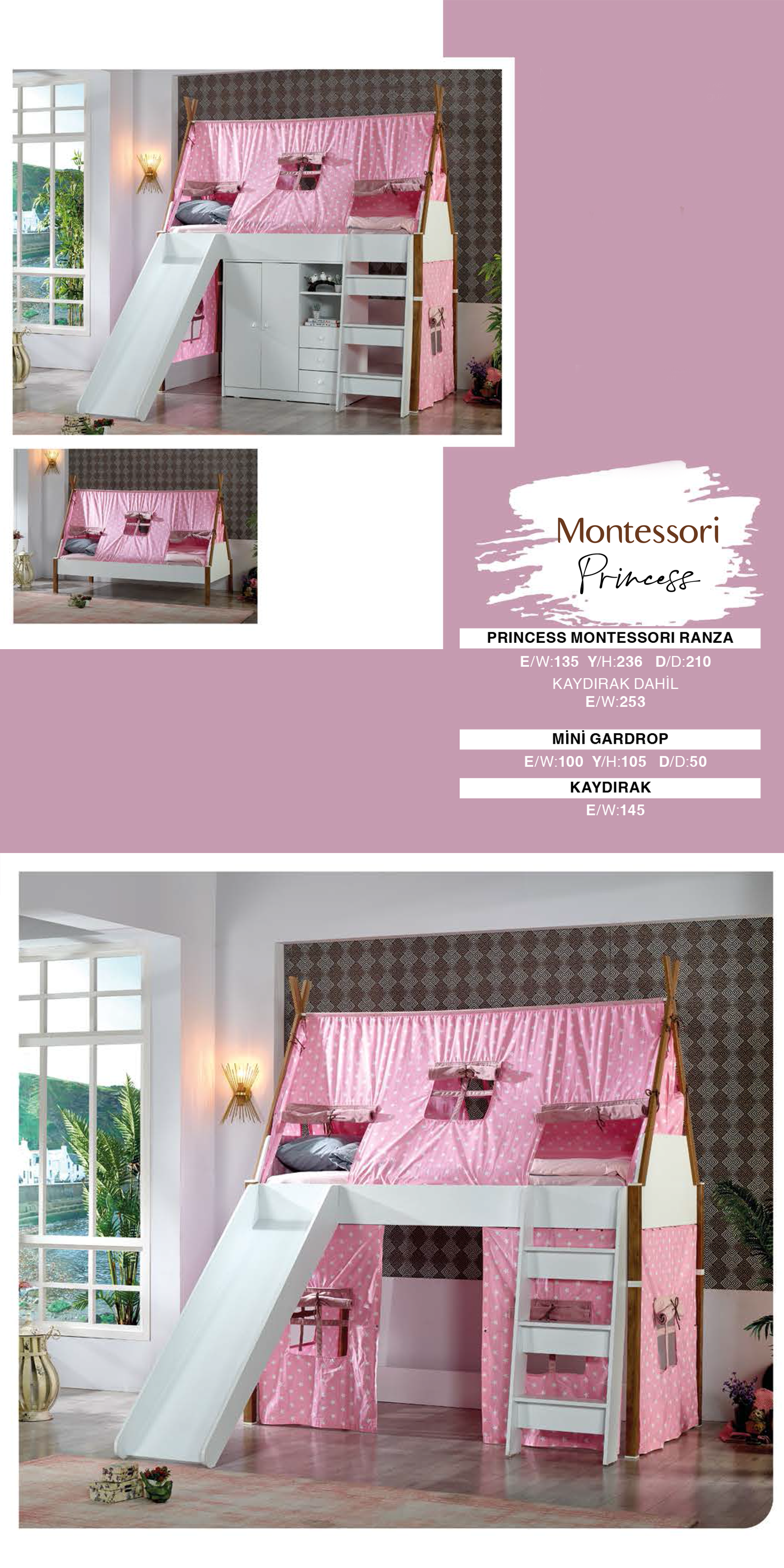Montessori Princess kız çocuklarınızın odasına renk ve hareket katarken, arkadaşlarıyla keyifli oyunlar ve güzel zaman geçirmelerini sağlar.